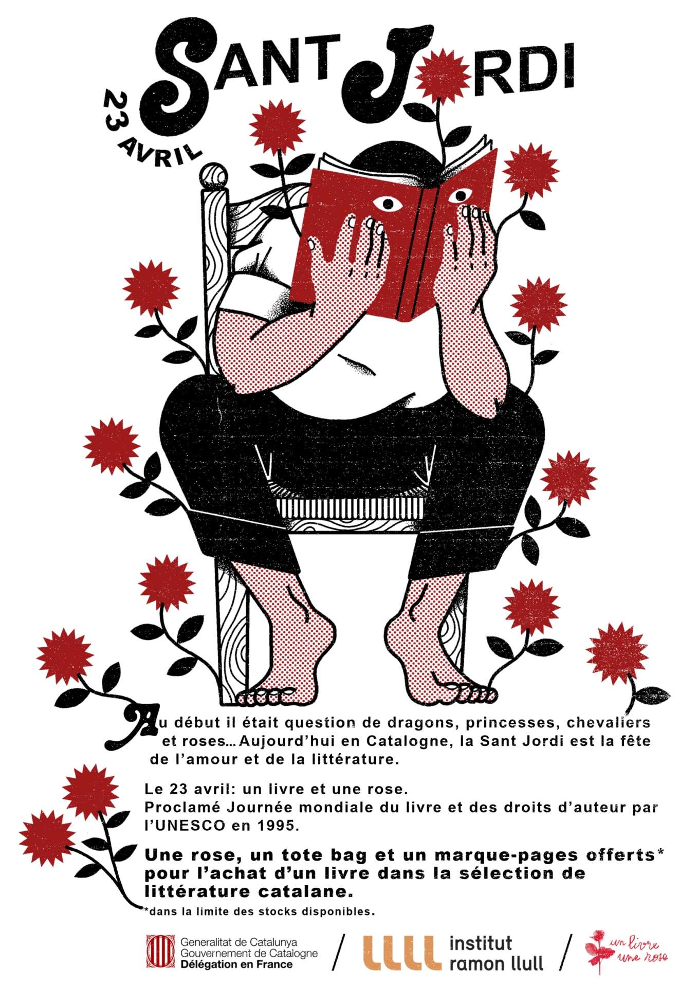 La fête de la librairie indépendante se déroule traditionnellement le 23 avril, à l’occasion de la Saint Georges. Cette coutume nous vient de nos voisins Catalans qui, lors de la Sant Jordi envahissent parcs et places pris d’assaut par les libraires.