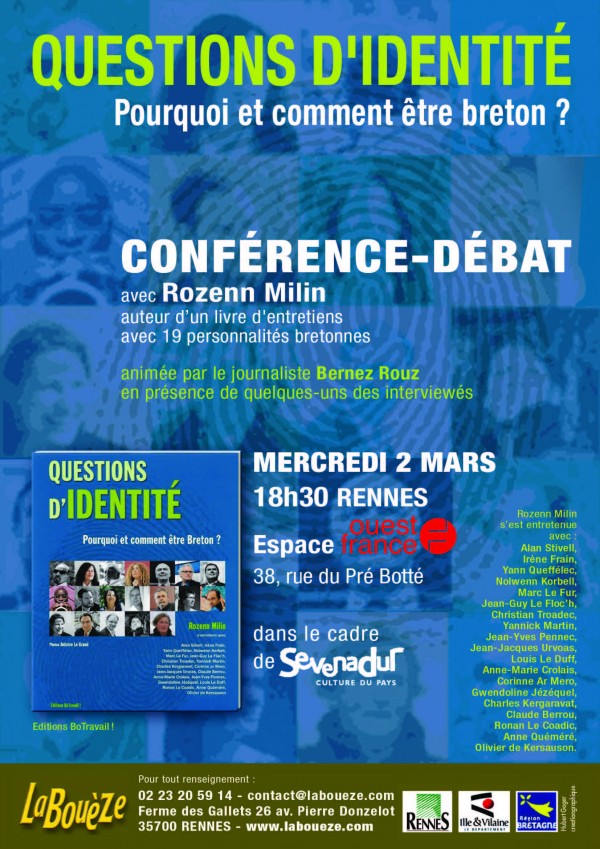 Pour tenter de répondre à ces questions, d’autant plus vives qu’elle vit autant à Paris que dans le Finistère, Rozenn Milin a interrogé des personnalités bretonnes, dont certaines touchent tout particulièrement le Cap-Sizun, comme Anne Quemeré, Jean-Guy Le Floch ou Nolwenn Corbel. À partir de portraits, puis de discussions croisées sur des thèmes précisément choisis, elle livreQuestions d’identité, un ouvrage foisonnant et coloré, facile d’accès, tout en restant profond dans son propos. Un livre référence en matière d’identité, un manuel de bretonnitude.