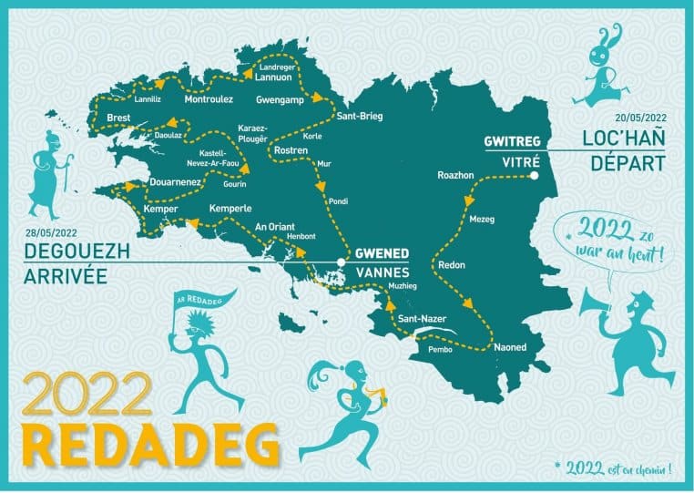 En 2022, pour sa 8ème édition, la Redadeg aura lieu du 20 au 28 mai de Vitré à Vannes.